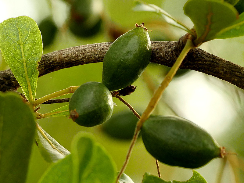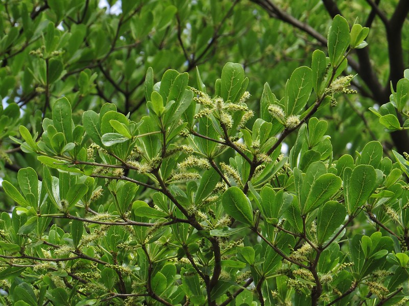 Lá nhỏ, dày, hình bầu dục thuôn dài, mọc so le và xanh quanh năm.