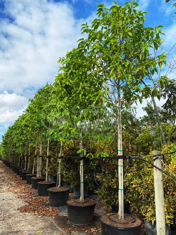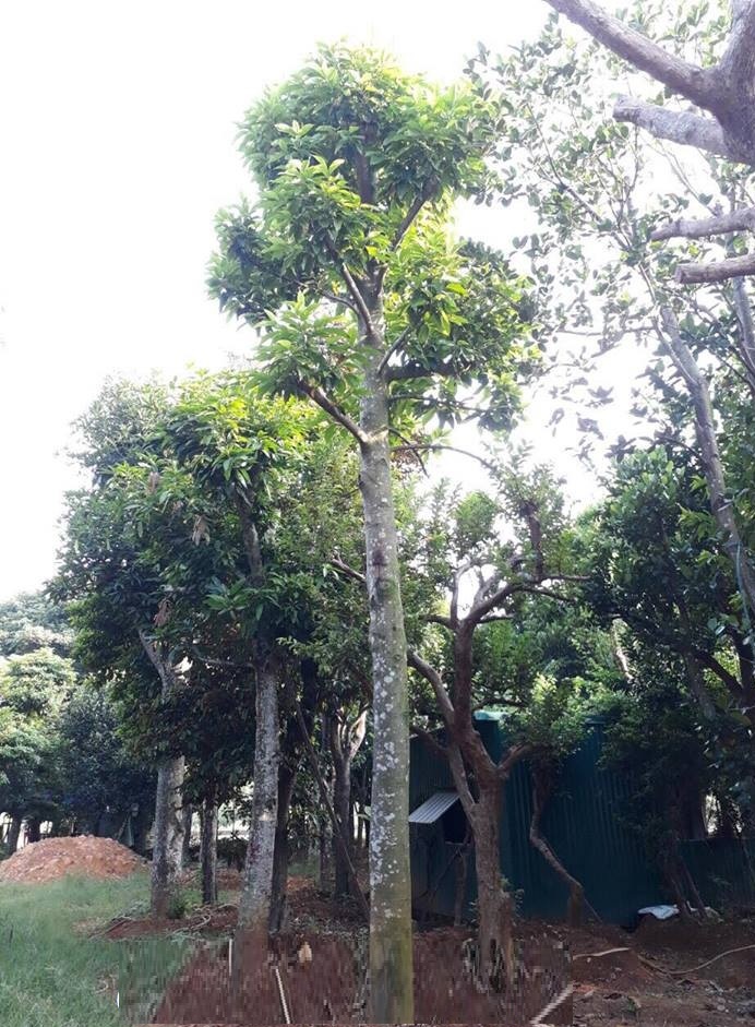 Cây thân thẳng, tán cân đối, lá xanh dày, không bị sâu đục thân hoặc vàng lá.