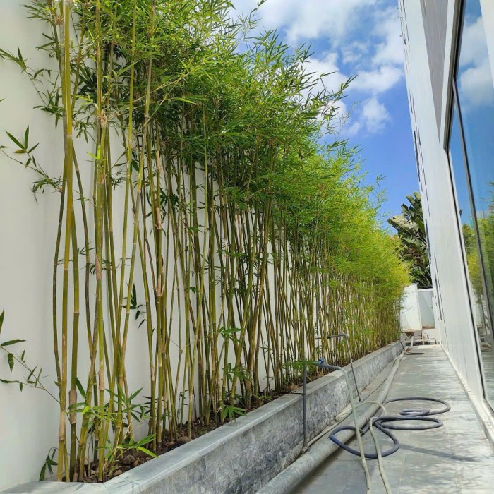Một lợi ích khác của trúc cần câu hàng rào là có thể trồng thành dãy để tạo ranh giới tự nhiên cho khu đất. Cách trồng này vừa giúp phân chia không gian vừa mang lại vẻ đẹp xanh mát.